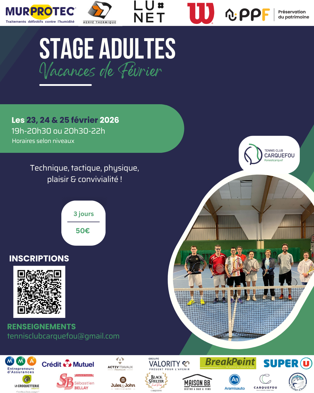 A chaque vacances scolaires (hors vacances de Noël), nous organisons des stages adultes niveaux initiation, perfectionnement et compétition ouverts à tous.